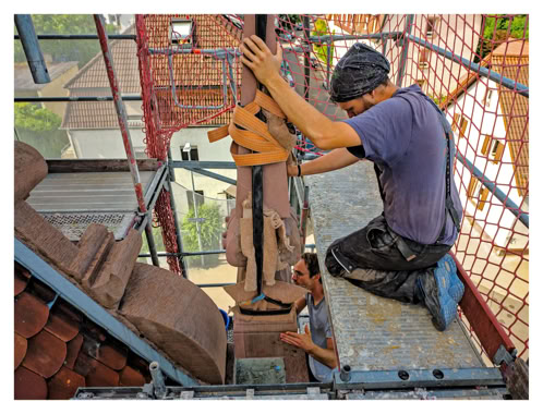 durch geprüfte, betriebseigene Restauratoren mit zusätzlicher Steinmetzausbildung • Partielle und flächige Festigungsarbeiten • Verfüllen von Rissen und Risssystemen im System Kaiser oder freihändig • Vernadelungen mit Gewindenadeln oder Kohlefaserstäben • Kittungen, Schlämmungen, Anböschungen • Herstellen von farblich angepassten Antragungen in Restauriermörtel • Retusche mit Silikatkreiden • Microstrahlarbeiten